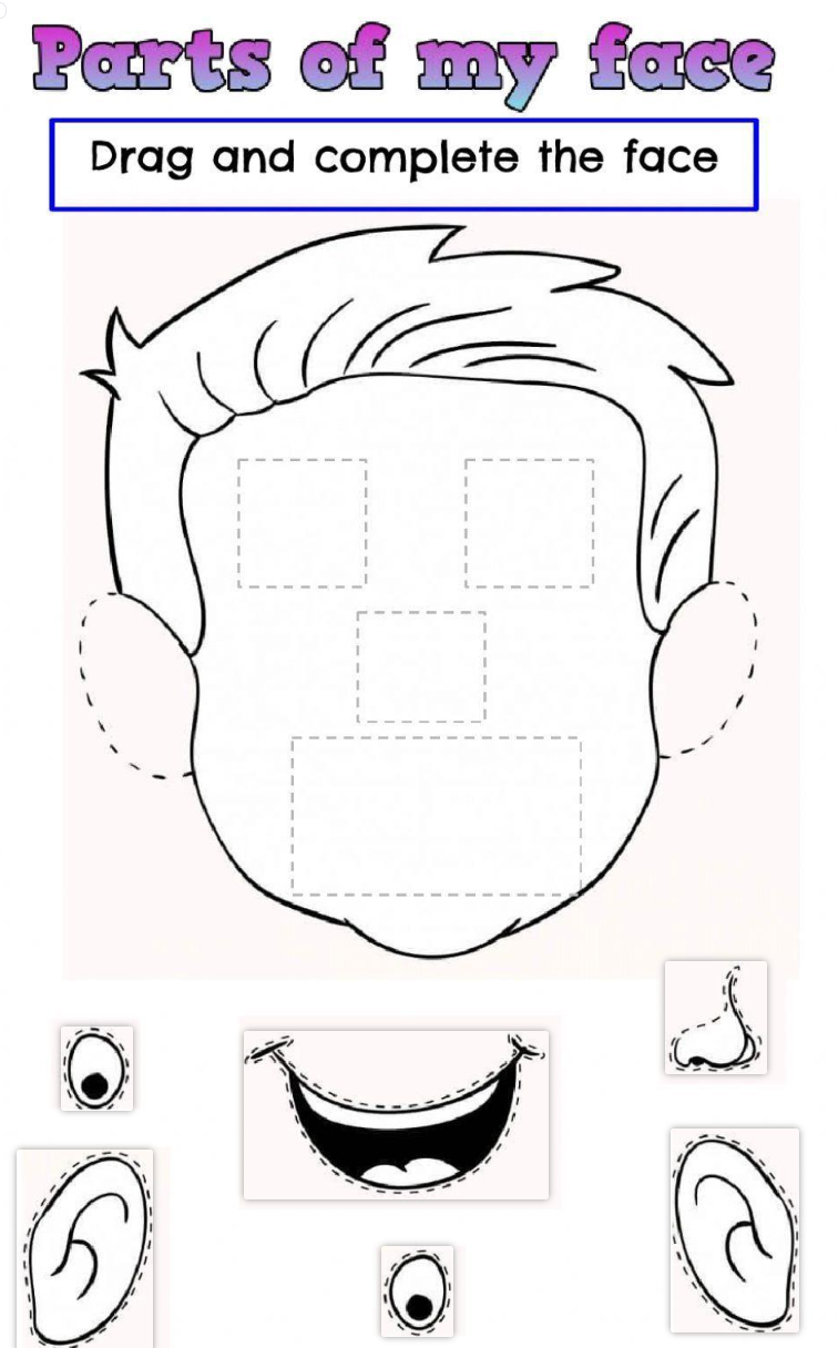 Where is the nose/mouth/ear located? It's on the face, show me to a draw.